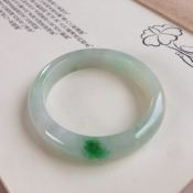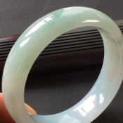 冰种飘绿翡翠手镯 缅甸天然翡翠手镯 尺寸:54.8*11.6*8.1