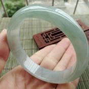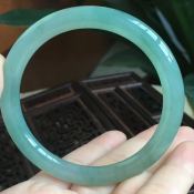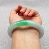 冰种飘绿翡翠手镯 缅甸天然翡翠手镯 55.6寸正装手镯