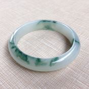 糯种飘绿花翡翠平安镯 正圈尺寸:59.2/14.7/7.6mm64.4g