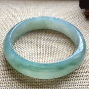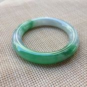 冰种飘绿花翡翠手镯 缅甸天然翡翠正圈手镯 尺寸 53.5寸