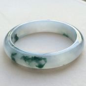 冰种飘花翡翠手镯 缅甸天然翡翠正圈手镯 尺寸:57.1寸
