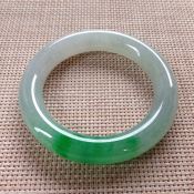 冰种飘绿翡翠手镯 缅甸翡翠天然手镯 尺寸57.2×10.8×10.9mm
