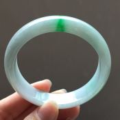 冰种飘绿翡翠手镯 缅甸天然翡翠手镯 尺寸:57.7x13.9x8.5mm