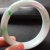 糯种飘绿天然翡翠扁管手镯13(58mm)
