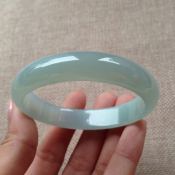 冰种飘绿翡翠手镯 缅甸天然翡翠手镯 尺寸55.7×12.8×8.6mm