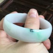 冰种飘绿翡翠手镯 缅甸天然翡翠手镯 尺寸:55.8x11.4x11mm