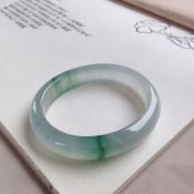 冰种飘绿翡翠手镯 缅甸天然翡翠手镯 尺寸:58寸