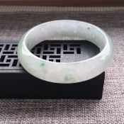 糯冰种飘绿翡翠手镯 缅甸天然翡翠手镯 尺寸:58.2寸