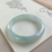 冰种飘绿翡翠手镯 缅甸天然翡翠手镯 尺寸:52.4*13.3*3.9mm
