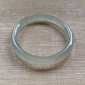 冰种飘绿翡翠手镯 缅甸天然翡翠圆条手镯 尺寸:56.8寸