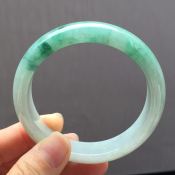 冰种飘绿翡翠手镯 缅甸天然翡翠圆条手镯 尺寸:56.8寸