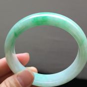 57高冰飘绿花翡翠贵妃手镯