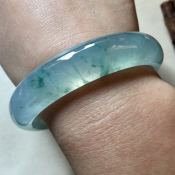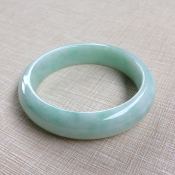 老冰种飘绿翡翠手镯 缅甸天然翡翠64.3寸正装手镯