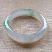 翡翠A货手镯 糯种飘绿.56.5正圈手镯