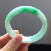 冰糯浅春彩翡翠手镯 缅甸天然翡翠平安镯 尺寸:58.4/15.1/7.5