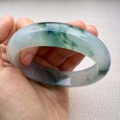 54.7寸糯冰飘花翡翠手镯 缅甸天然翡翠圆条镯