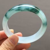 高冰飘花翡翠手镯 缅甸天然翡翠平安镯 58.2寸