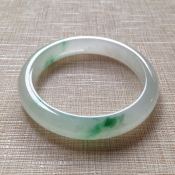 冰种飘绿翡翠手镯 缅甸天然翡翠手镯 55.6寸正装手镯