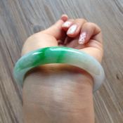 糯冰带色翡翠手镯 冰润清爽 色泽清新鲜绿
