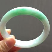 细糯飘绿大号翡翠平安镯:60.4/13.9/8.7