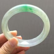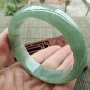 糯种飘花翡翠手镯 缅甸天然翡翠58正装手镯