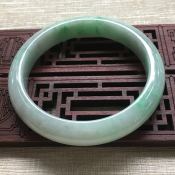 糯种飘绿翡翠手镯 缅甸天然翡翠手镯 57.5