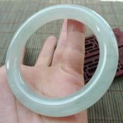 翡翠手镯A货 糯冰种淡绿52正圈翡翠手镯