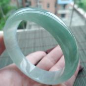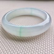 A货翡翠手镯 冰种飘绿宽边正装翡翠手镯 尺寸57.3-14.9-7.6mm