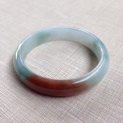 糯种飘花带红翡手镯 缅甸天然翡翠55寸正装手镯