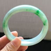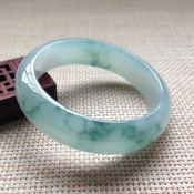 冰种飘绿翡翠手镯 缅甸天然翡翠手镯 54寸正装手镯